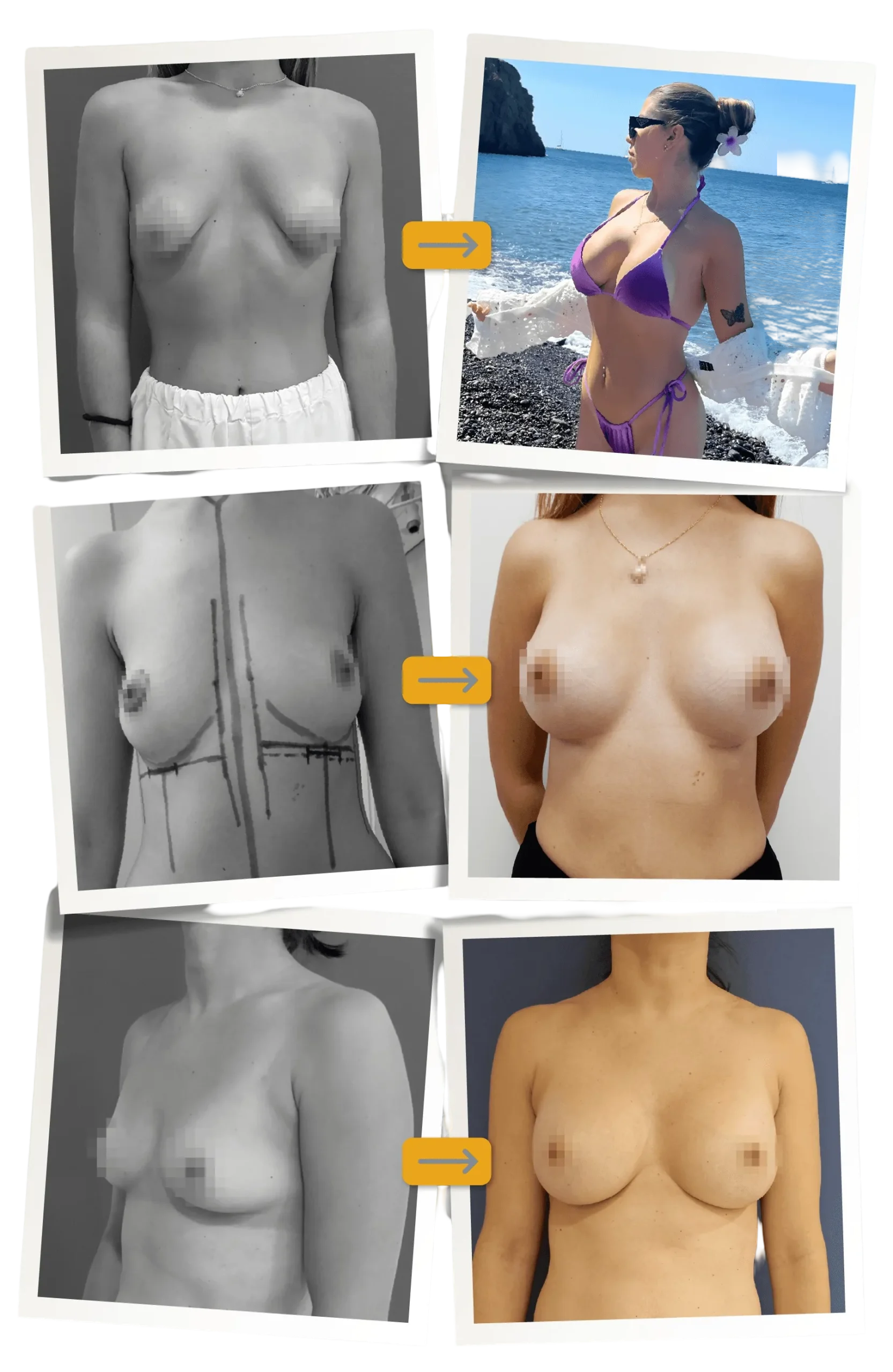 En esta sección encontrarás algunos ejemplos reales de pacientes intervenidas por el Dr. Paul Zamora. Las imágenes se muestran con pixelado discreto en la zona del pezón para preservar su intimidad y tienen una finalidad exclusivamente médica e informativa. Cada cuerpo es distinto, por lo que estos resultados no garantizan un resultado concreto, pero ayudan a entender qué tipo de cambios se pueden conseguir con una planificación individualizada.