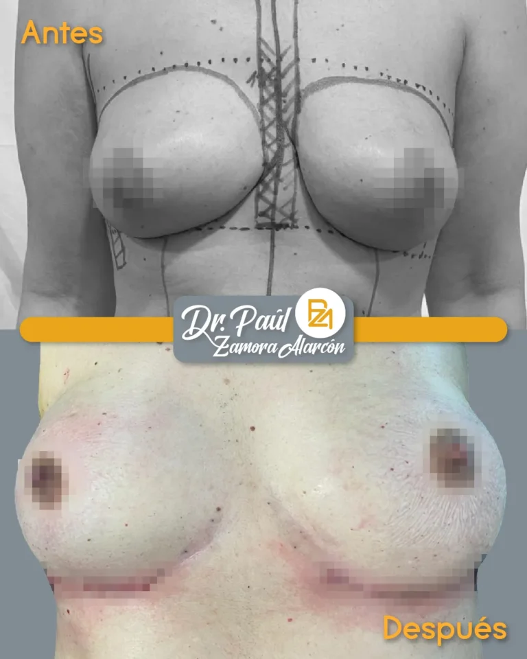 A continuación se muestran algunos casos reales de reconstrucción mamaria realizados por el Dr. Paul Zamora, tanto con prótesis como con tejido propio. Las imágenes tienen una finalidad exclusivamente médica e informativa y ayudan a comprender qué tipo de cambios se pueden conseguir tras una mastectomía o una tumorectomía, siempre teniendo en cuenta que cada paciente parte de una situación distinta y que los resultados son individuales.